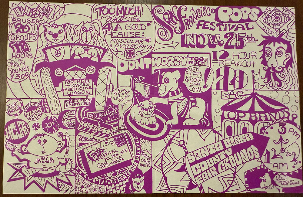 “I was probably 12, 13, riding a Stingray bicycle, coming from the Cupertino area, just to go look at the black light room, which was just amazing,” Guardino said. “And to collect the latest Fillmore or Avalon Ballroom handbills or anything I could get my hands on. I was fascinated with the art, fascinated with the bands I was learning about at the time, and that was the only place you could really go to that had significant visual art and sound.”