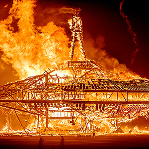 The entire Burning Man celebration lasts a week, with the “burn” of the event’s iconic man on Saturday night. But toward the end of the week, clean faces will start popping up in the dusty crowd: flown or helicoptered in for the big event.