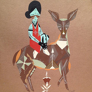 This month’s art show features the work of Nikkea Takagi, one of the owners of Black Arrow Printing. Takagi’s work is made up largely of intricate line-paintings of people and animals reminiscent of Navajo art. The highly geometric “building blocks” of Takagi’s work shapes beings in harmony with nature. Patterns like a night sky are part of a larger organism, which in turn is part of the tapestry of the world around it. It’s her first solo show, and Tupou and the rest of Chromatic Coffee are excited to debut it.