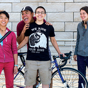 SADDLE READY: Teri Nguyen, Cain Ramirez, Seth Reis and Amanda Muehlbauer (left to right) launched the region’s only bike courier service. Photograph by Larry Hinh