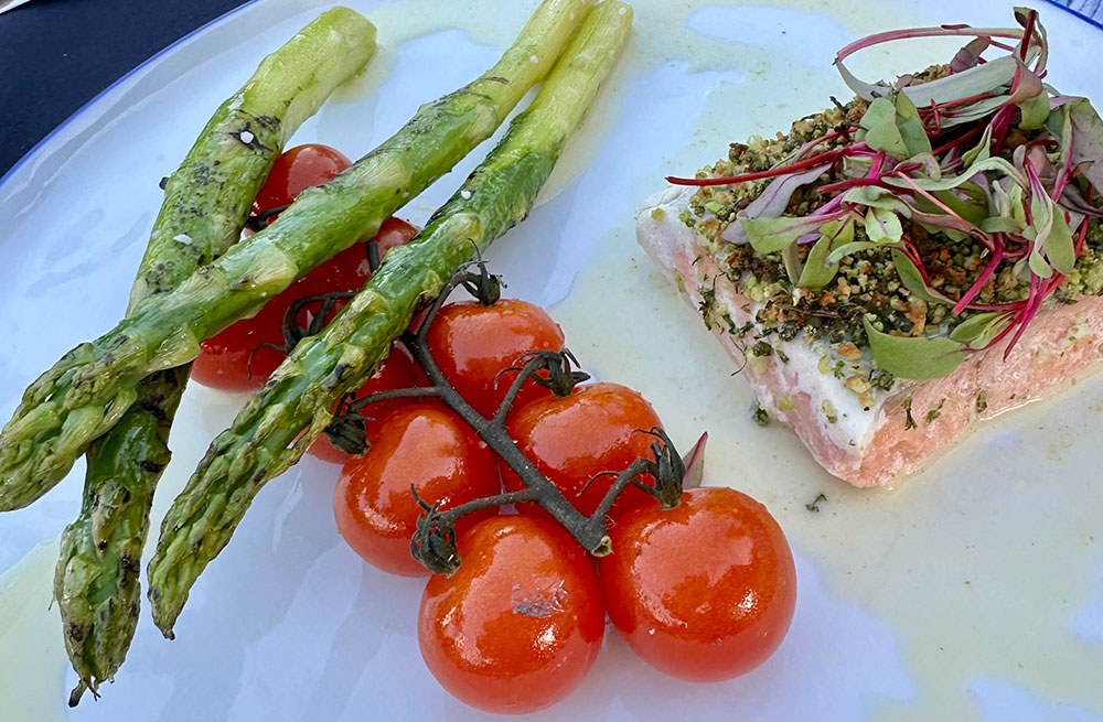 While on-site concessions are available during most shows, dining al fresco at Chateau La Cresta is a memorable experience, with food by Global Gourmet. A recent three-course prix fixe menu offered some great appetizer choices, including Brussels sprouts with bacon, wedge salad with Point Reyes blue cheese, and a tomato and burrata salad with prosciutto and arugula. Mains were Markegard short ribs with mushroom risotto, poached salmon with asparagus, Mary’s rotisserie chicken with broccolini, and rigatoni amatriciana with tomato cream sauce and pancetta.