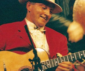 GYPSY KINGS: Django Reinhardt, resplendent in white, demonstrates his unique guitar sound circa 1932 (opposite); Dorado Schmitt (below) plays in the Django style for his show at Kuumbwa Jazz Center Jan. 25.