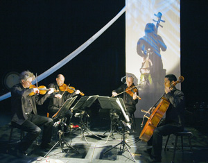 NEW RELIGION: Saturday night’s performance of the Kronos Quartet and Wu Man at Memorial Auditorium opened with Tan Dun’s ritualistic ‘Ghost Opera.’