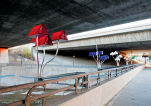 ROBIN LASSER and I are strolling beneath San Fernando Street and the Highway 87 overpass—an ominous trilevel milieu of concrete and steel enveloping what’s left of the Guadalupe River.