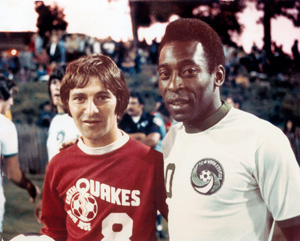 LEGENDARY PAIR: Quakes star Johnny Moore and soccer great Pelé in 1975.