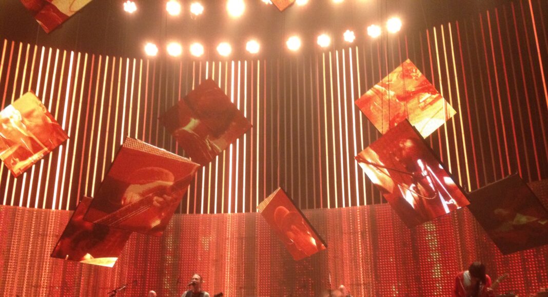 King of Limbs, their most recent album, was featured heavily, with nearly every song off the album played. The very electronic, highly percussive album with strange time signatures was far from a standard rock record, and when it came out over a year ago, the band said they weren’t sure how they would pull off some of the songs live. They added a sixth member, Portishead’s touring drummer Clive Deamer, to help.