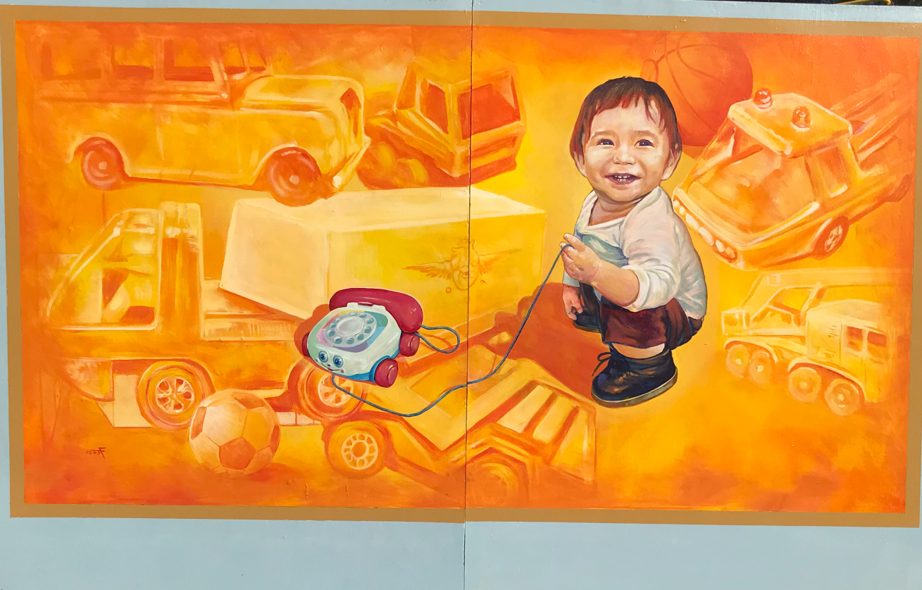Francisco Ramirez’s “The Joy of Christmas” captures the jubilation and happiness of the season through the lens of a child. Featuring his son at play surrounded by nostalgic gifts, Ramirez aims to spread joy and warmth with a palette of cozy yellow hues. The mural subtly emphasizes the importance of toy drives and the shared happiness that the holiday season brings.