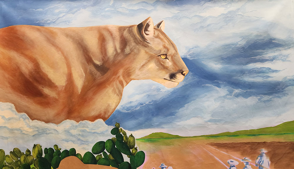 A highlight for viewers is the enormous cougar that looks out over the entire story. The striking image is inspired by the name Mexican ranchers used for the area, La Rinconada de Los Gatos (The Cats’ Corner). Talamantes has enjoyed telling visitors about a past in which the cries of mountain lions could be heard across the valley.