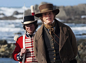Creation is unstuck in time; we have to judge the hairline on Bettany’s toupees to tell us where we are in the tale. The film uses the Ken Russell approach to this scientist; he’s a haunted man in an unholy racket, killing legions of pigeons to examine their skeletons. Darwin’s health was supposedly very bad, although watching Creation is like watching House M.D.: It’s not lupus, is it? Was it all psychosomatic illness, a literal fear and trembling of a scientist assaulting the majesty of God? One listens to Darwin’s noble prose on the soundtrack and tries to link it to the nigh–grand mal seizure we’re watching: the hallucinations of dead Galapagos finches coming to life and breaking out of their bell jar and scorpions scuttling to life. To treat himself, Darwin erects a water tower and sits under cascades of cold water, which are far less chilly than the stares Emma gives him as she rumbles on her piano. She has her views. So does Jeremy Northam as the bigoted village vicar; he’s the reactionary equivalent of Toby Jones’ Thomas Huxley, sneering and gloating over the death of God.