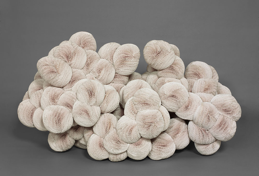 Tara Donovan is the fourth artist featured in Still in Motion with her sculpture Untitled (Paper Plates) (2005). Donovan also wrote me an email describing her connection to Calder. “The San José Museum of Art exhibition focuses on many of the objects Calder created for personal use, which is an issue I always take into account in the development of my own work.” Her Untitled (Paper Plates), she wrote, “focuses on the scalloped edges of the plates as an organizing principle to create a sculptural object amplifying optical patterns and movement as viewers experience it.”