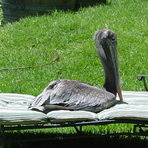 During mating season, the pelican’s eyes turn blue and their throats turn crimson. Having no voices, the pelicans communicate through gestures—from tantrumy fits when very hungry, to twirling to catch the attention of a potential mate. Pelican Dreams reaches highest aw-factor in a silent sequence at the home of the bird-rescuing Dani and Bill Nicholson of Cayucos, California; their permanent guest, “Morro,” silently paces into their living room, puzzling over the furniture.
