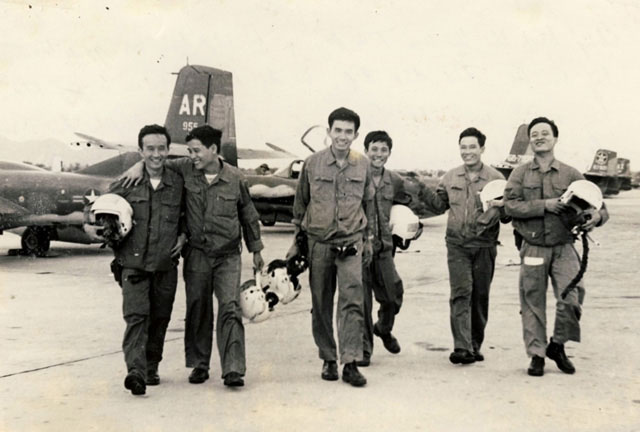 North Vietnamese pilots returning to their base near Danang after bombing Tan Son Nhut Airbase in Saigon on the morning of April 29, 1975. The North Vietnamese pilots had plenty of fuel for their aircraft. The South Vietnamese Air Force suffered from serious fuel shortages.