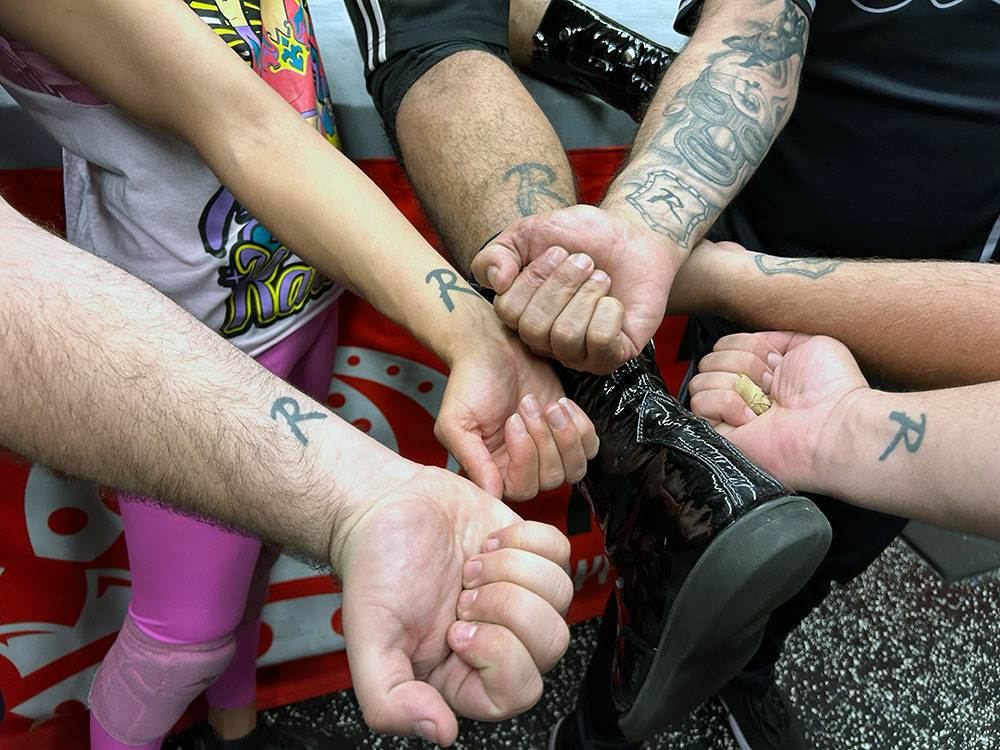 BONDED Luchadores also show their commitment by tattooing the ‘R’ logo on their bodies. Photo by Josué Monroy