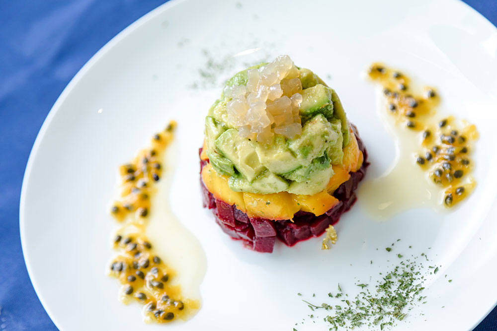 DISHING IT UP Yellowtail medallions atop butternut squash bisque from BlueNalu.