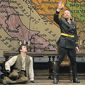 Archduke is more than a blend of speculative fiction and the re-creation of anecdotal information from history. Like Don DeLillo’s portrait of Lee Harvey Oswald in Libra, Joseph searches for and finds the reasons why Gavrilo, Nedeljko (Adam Shonkwiler) and Trifko (Jeremy Kahn) fall prey to the charismatic Apis. The colonel strikes a paternal pose, seducing these stray, penniless orphans with promises of glory, and, most important of all, his approbation. When we meet these young men in the opening scene, they’re like characters out of Victor Hugo’s Les Misérables—hungry, isolated and vulnerable.