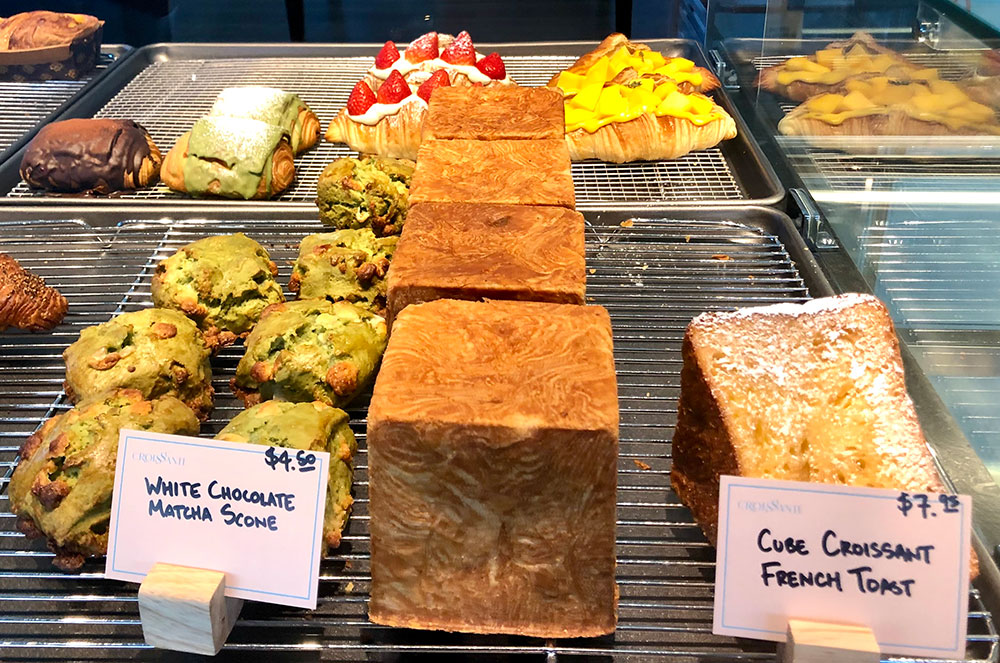 BLOCK OF BREAD Mammoth “Cube” croissants are an unusual item at Croissante.