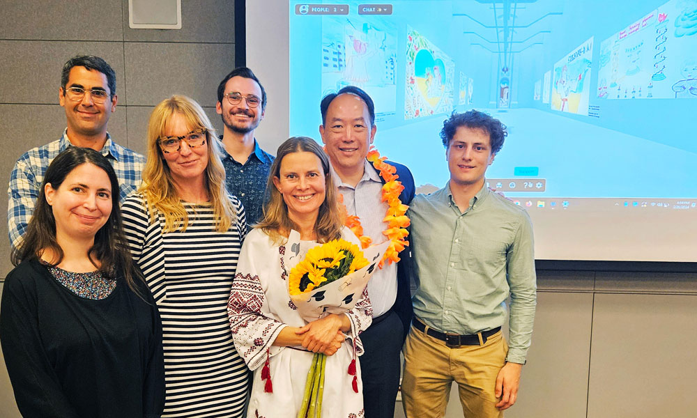 The catalyst for the exhibit was Ulia Gosart, who joined iSchool in 2022, around the time that Russia invaded her homeland. Gosart came from the Cherkasy region in central Ukraine, where more than 225,000 citizens congregated after they were displaced by attacks by Russian troops—including 42,805 children. She was in contact with local librarians, who sought help to raise money for a scanner so they could digitize artifacts of Ukraine’s cultural heritage.