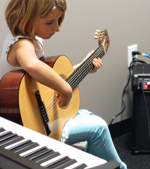 “Even as absolute beginners, we get all the kids playing together right away,” says London. “Because if you’re lucky enough to have music in your school when you’re playing with other kids, it’s usually band instruments. So with guitar, bass, or drums, you’re usually taking private lessons, then you go home and sit on your bed and play. So what we’re striving to create is a place where they can come and be real musicians, work on rhythm, timing, communication, cooperation and all the stuff that comes along with playing with other people.”