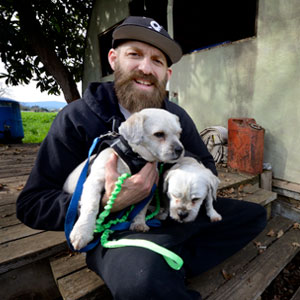 “[Cookie] was in a really shitty situation and there was a lot of aggression going on between some of the people in her encampment,” La’Roux says. “That dog was going to die. We got her out. Now she’s the most pampered, amazingly treated dog, laying in a bed with a bunch of cats.”