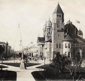 DAYS OF OLD: Once upon a time, San Jose’s majestic post office (right) housed the public library. Courtesy History San Jose