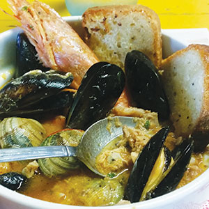 As we sat down to plow through bowls of seafood soup that Barchiesi also made from scratch, a family of swallows chirped away in a nest above our table, right where the side of the building met the overhang. The birds circled in and out of the scene, on the lookout for any mosquitoes that might ruin our meal.