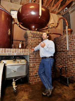 The distillery has two copper alembic stills made in France just for him. The dark purple, three-chambered contraptions look positively 18th century.