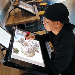 Daichi Ito, a senior technical artist for Adobe, shows how Wetbrush allows users to paint in 3-D on a screen. Photo by Gary Singh