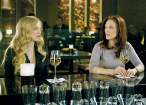 CHLOE (R; 96 min.), directed by Atom Egoyan, written by Erin Cressida Wilson, photographed by Paul Sarossy and starring Julianne Moore, Liam Neeson and Amanda Seyfried, opens March 26.