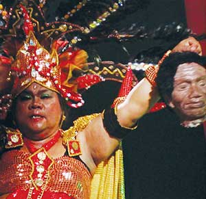 HEAD SHOT: Herman Koto, who donned drag for the reenactments of his crimes, had a little too much fun with the Hollywood props.