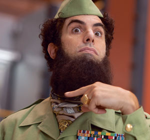 Sacha Baron Cohen‘s resemblance to an elongated Charlie Chaplin may be a key to The Dictator; he’s a funny figure but a chilly one. The Dictator also borrows from Chaplin’s A King in New York, with its hereditary monarch stranded in the city. And Cohen has, as critic Robert Warshow wrote of Chaplin, a cold heart visible in the most genial moments—never more so than with his newest character.