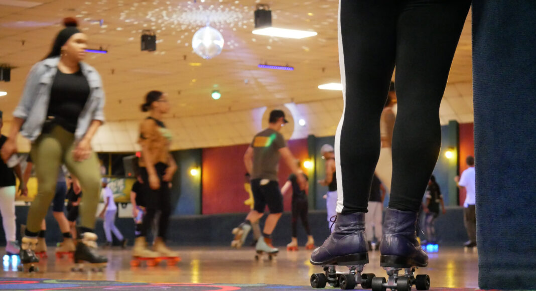 “Everybody’s sweaty, everybody’s learning, everybody’s falling, and it’s fine because you all come back up, and you feel the music together,” Hackett says with a laugh. “It’s centered around Black music—Cardi B, Drake, Beyonce—but we skate to whatever really, as long as it has a good beat. Even if the tempo doesn’t fit, the DJ will remix it a little slower, a little faster.”